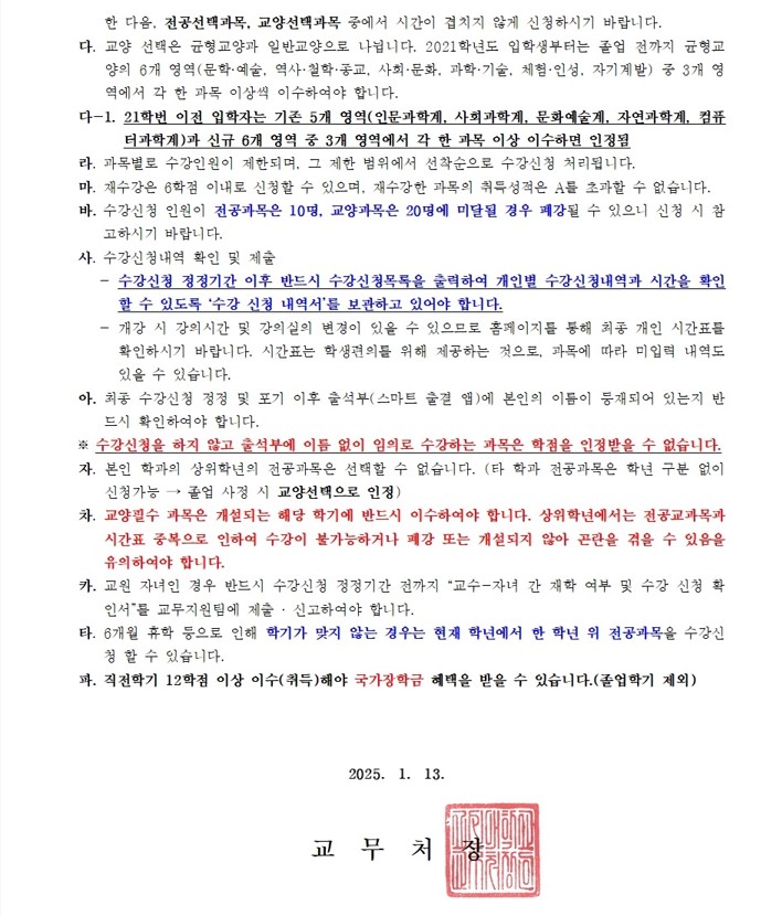 [2025학년도 1학기 수강신청 안내]