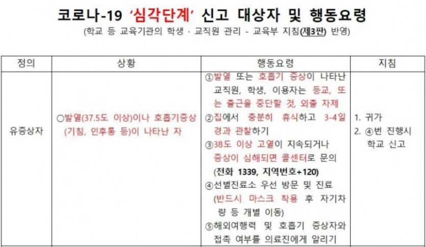 2. 37.5℃ 이상 발열 확인되면 추가 코로나19 임상증상(기침, 호흡곤란, 오한, 근육통, 두통, 인후통, 후각&미각 손실, 타지역방문여부 등)을 확인하고,