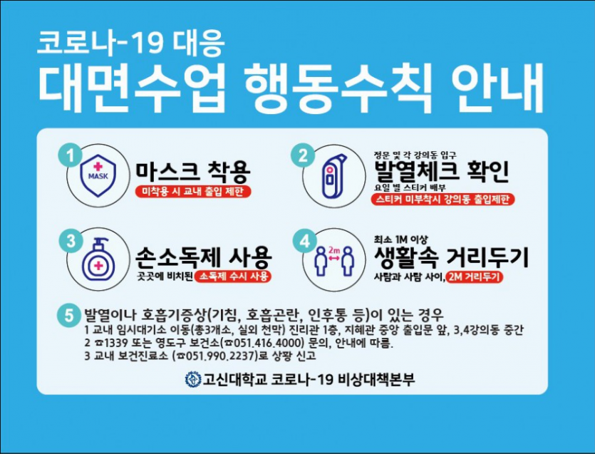 코로나 19 감염예방을 위한 대면수업 및 건강한 학교생활 행동수칙
