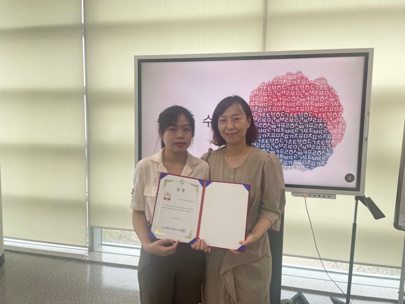 이어서 안희은 원장은 "한국에 적응하는 것이 힘들텐데 잘 따라와줘서 고맙고 열심히 한국어공부를 해보자"고 한국어교육원 외국인 유학생들을 격려하며 수료식을 축하해주었다.
