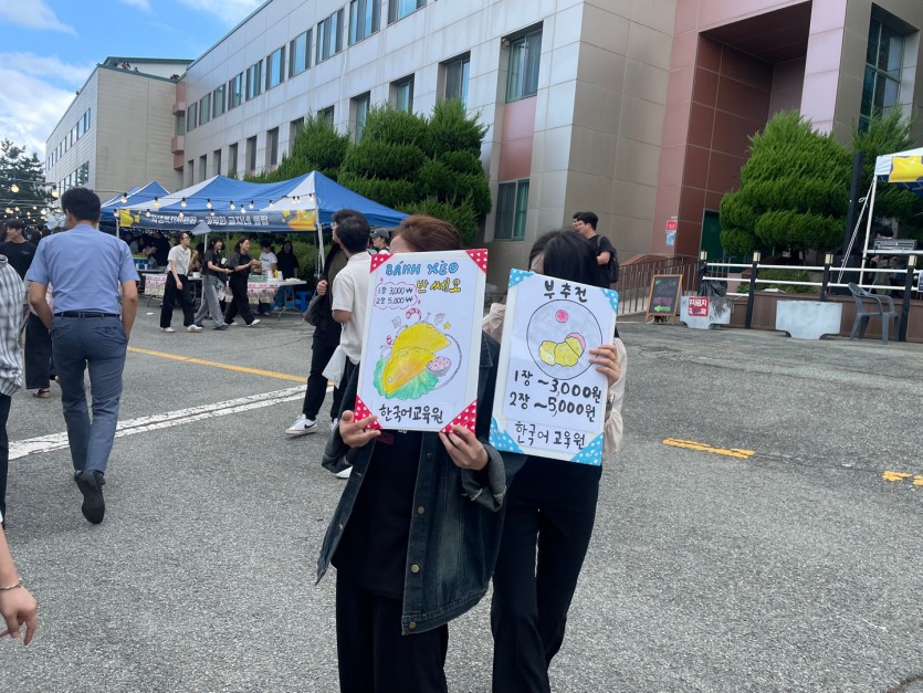 외국인 유학생 축제 부스는 한국 잔치의 대표적 전통 음식인 파전과 식혜를, 베트남의 대표적 음식인 반쎄오를 판매하였다.