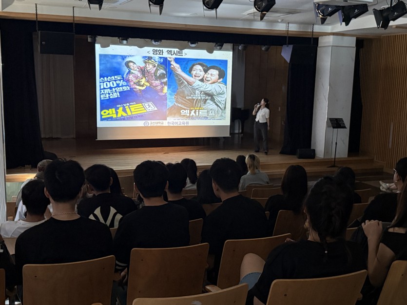 영화 엑시트는 재난 상황 속에서 펼쳐지는 가족애와 청년 세대의 도전을 그린 작품으로, 학생들은 영화 속 유머와 감동을 통해 한국 사회와 문화적 정서를 자연스럽게 접할 수 있었다.