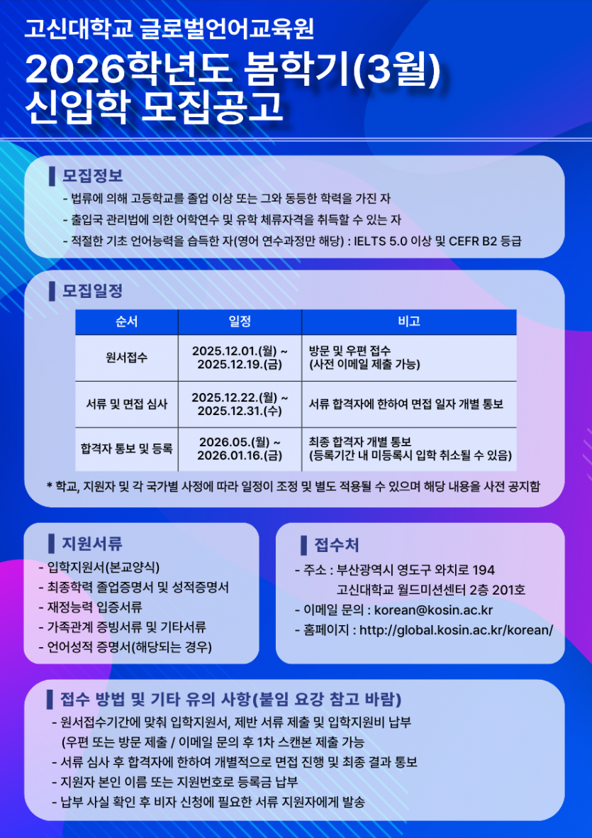 글로벌언어교육원 2026-봄학기 신입학 모집 공고