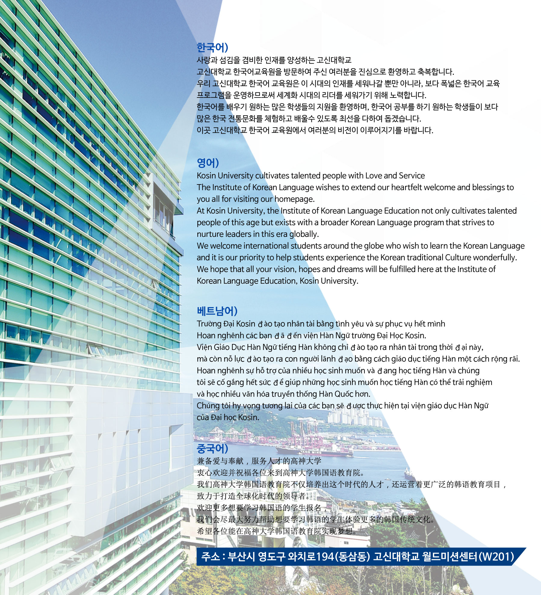 Institute of Korean language education, Kosin University, 194 Wachiro Yeongdogu Busan S.Korea